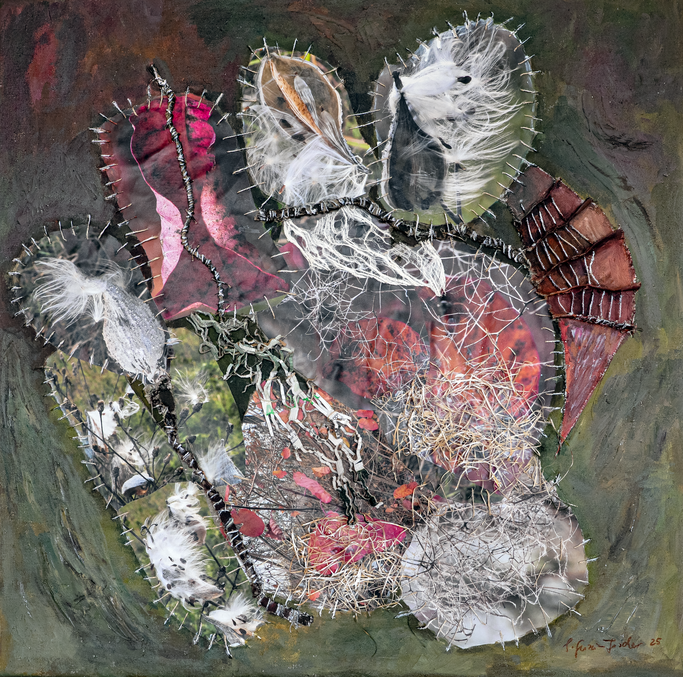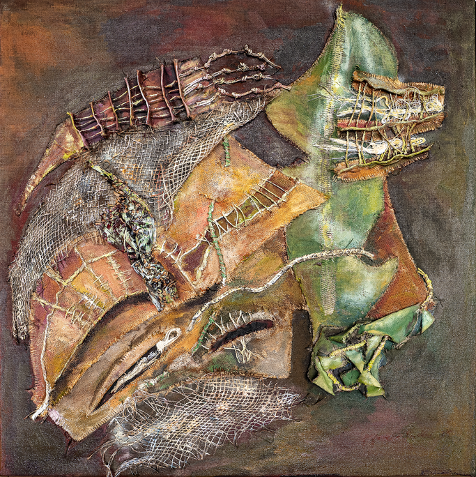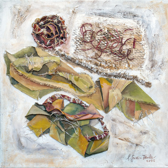 Acryl auf Leinwand, verschiedene Stoffe, Schnüre