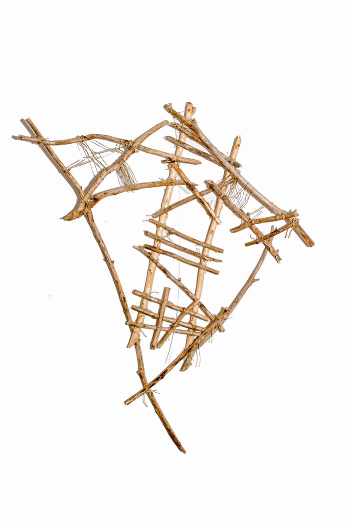 Schwemmholz, Leinwand, Schnüre