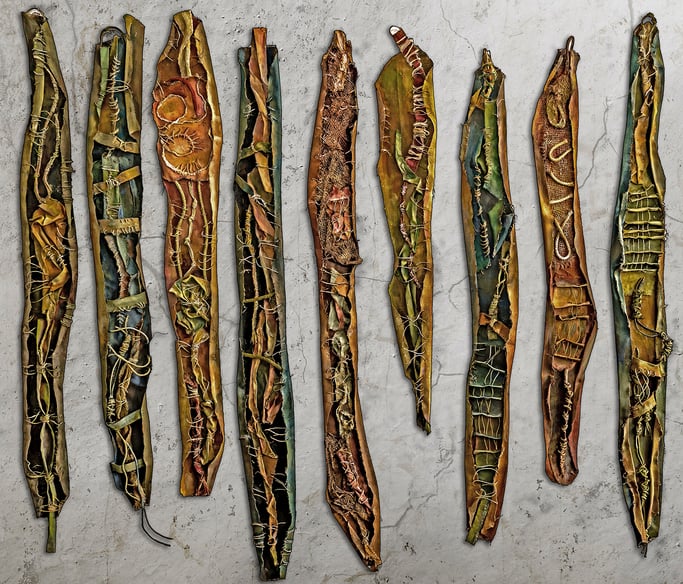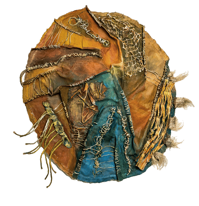 Acryl auf Leinwand, getrocknete Pflanzen, Schnüre